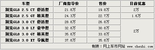 據(jù)4S店銷售人員介紹:目前別克GL8全系大部分車(chē)型可優(yōu)惠2萬(wàn)元,僅有2.5升精英型優(yōu)惠1.6萬(wàn)元。目前2.5排量車(chē)型2款均有現(xiàn)車(chē),但顏色并不齊全,主要有銀色及藍(lán)色。3.0升車(chē)型無(wú)現(xiàn)車(chē),預(yù)定需等2-3周時(shí)間,優(yōu)惠也可到2萬(wàn)元。目前GL8系列車(chē)型經(jīng)過(guò)優(yōu)惠后,最低售價(jià)不足20萬(wàn)元。