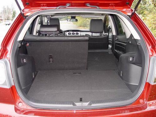 在排擋桿的后面是兩個杯架,后排中央扶手處也有兩個。在兩個前排座椅之間是一個帶有很大儲物箱的扶手,抬起扶手就可以發(fā)現(xiàn)里面有一個托盤,外接音頻接口和12伏電源插座。在手套箱和前排座椅背部的口袋內(nèi)內(nèi)還有更大的儲物空間。只需扳動行李箱內(nèi)的一個扳手就可以將后排座椅折疊放平,從而使儲物空間大大提高。在行李箱地板下備胎周圍還隱藏著一個儲物空間。車尾的掀背式尾門很輕,打開抬起或放下尾門都很容易,尾門開口很高,很寬,雖然儲物空間很寬敞,但仍比RAV4,CR-V和Equinox的小。