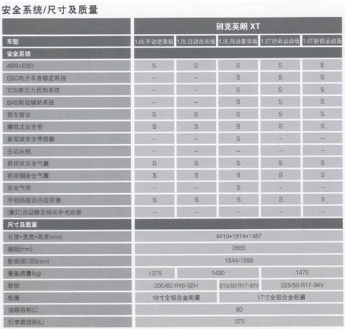 別克英朗提供了較多的車(chē)輛電子安全系統(tǒng),包括:ABS、EBD、CBC、EDC,最新版本的ESC系統(tǒng)和大尺寸剎車(chē)碟。前排4只安全氣囊在同級(jí)別車(chē)型的配備中算得上是中規(guī)中矩,沒(méi)有側(cè)面頭部安全氣簾也許是英朗整車(chē)上為數(shù)不多的因成為而妥協(xié)的安全配置。