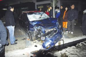 肇事的轎車撞得面目全非(熱心讀者提供) 時(shí)間:19日21:30