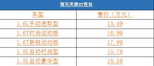 售13.49-18.59萬 別克英朗XT上市