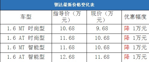 近日,編輯從北京地區(qū)綜合經(jīng)銷商處了解到,東風(fēng)日產(chǎn)騏達(dá)的現(xiàn)車充足,近期購(gòu)車的消費(fèi)者可以享受1萬(wàn)元的現(xiàn)金優(yōu)惠,降價(jià)幅度與上個(gè)月相比提高了2000元,性價(jià)比非常不錯(cuò)。據(jù)經(jīng)銷商透露,消費(fèi)者要想以這個(gè)價(jià)格提車,需要在店內(nèi)做購(gòu)車一條龍服務(wù),其中車輛四項(xiàng)基本保險(xiǎn)沒(méi)有任何折扣(約合4300-4800元左右)。以下是騏達(dá)最新價(jià)格變化表: