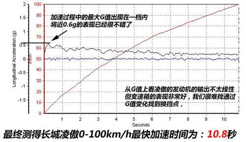 雖說從參數(shù)上看,這款GW4G15發(fā)動機的最大扭矩是出現(xiàn)在4000rpm左右,但在測試時編輯發(fā)現(xiàn)用4000rpm起步后轉(zhuǎn)速會掉的很多,沒有做到最大扭矩起步的目的。所以編輯嘗試5000rpm起步,凌傲的前輪難以避免的出現(xiàn)了打滑的情況,不過車身抬頭的情況并不是特別明顯,這個轉(zhuǎn)速起步后,發(fā)動機的轉(zhuǎn)速雖然也會掉,但離最大扭矩輸出的點比較靠近,所以起步效果比4000rpm還要好一點。最終凌傲0-100km/h的最好加速成績?yōu)?0.8秒,這個成績在這個級別的國產(chǎn)車中是比較靠前的成績!