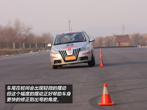 穿樁測試環(huán)節(jié),凌傲的轉(zhuǎn)向非常準確,四輪四角的設(shè)計讓它在樁間顯得異常靈活。由于這款車 不帶ESP功能,所以車尾在樁間會出現(xiàn)輕微的擺動,但這個幅度的擺動正好幫助車身更快的修正到出彎的角度。可以說,凌傲在裝桶間具有較高的駕駛樂趣。