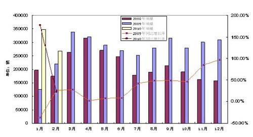 2008-2010年1.6升及以下月度乘用車銷量及變化情況