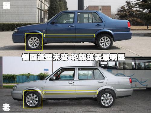 側面輪廓主要有兩處變化,其一,老款曾經(jīng)的側防撞飾條在新款上被一條筆直的棱線所代替,簡潔明了;其二,輪轂造型也發(fā)生了變化,雖然都為八幅式,但細節(jié)處有較大變化,并經(jīng)過了拋光處理,樣式更加符合時代氣息。