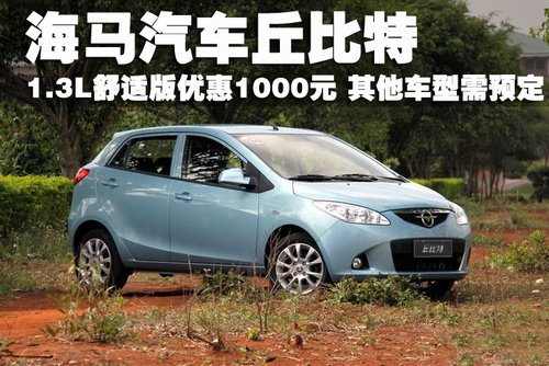據(jù)海馬汽車4S店銷售人員介紹,在丘比特4款車型當(dāng)中,售價(jià)5.89萬元的1.3L手動(dòng)舒適型性價(jià)比較高,也已成為丘比特銷售的主力車型,可以享受1500元的現(xiàn)金優(yōu)惠。其他兩款1.3L車型和1.5L車型均無現(xiàn)車,如想預(yù)訂需要交2000元訂金,到車時(shí)間為1個(gè)月左右。