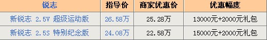 與皇冠共用底盤,發(fā)動(dòng)機(jī),同為6檔手自一體的變速箱,這是銳志最大的亮點(diǎn)。雖然較小的車內(nèi)空間一直讓人詬病,但對(duì)操控性的執(zhí)著依然得到不少車友的認(rèn)可,銷量與優(yōu)惠幅度都比較穩(wěn)定,現(xiàn)在主打的2.5S特別紀(jì)念版打出1.5萬元的現(xiàn)金優(yōu)惠,算是比較理想的價(jià)格,有興趣的朋友可以考慮出手。