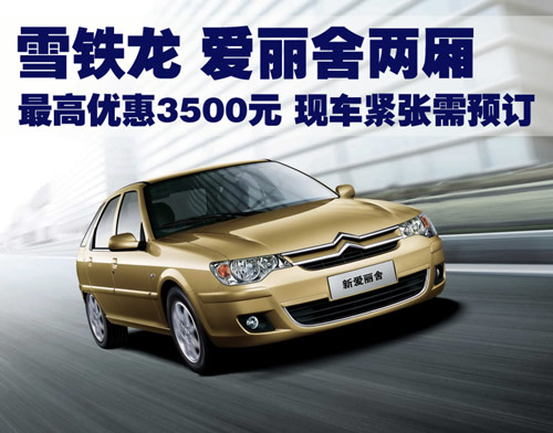 據(jù)東風(fēng)雪鐵龍4S店銷(xiāo)售人員介紹,目前購(gòu)買(mǎi)愛(ài)麗舍兩廂贈(zèng)送50%購(gòu)置稅,根據(jù)車(chē)型不同購(gòu)置稅可折合優(yōu)惠現(xiàn)金3200元-3600元,但現(xiàn)在店內(nèi)現(xiàn)車(chē)緊張需要預(yù)訂,訂金為2000元,根據(jù)顏色的不同,預(yù)訂后可在半個(gè)月到一個(gè)月左右時(shí)間可以提到現(xiàn)車(chē)。北京地區(qū)各4S店由于訂單不同,各店銷(xiāo)售的現(xiàn)車(chē)顏色有所不同。
