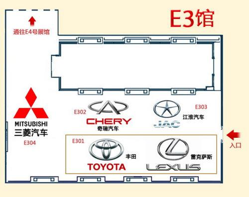 在本屆北京車展,E3館有奇瑞汽車、豐田、雷克薩斯、江淮、三菱等5個(gè)品牌參展。亮點(diǎn)車型:豐田新銳志、豐田新款卡羅拉、雷克薩斯LFA、三菱RVR、奇瑞新款A(yù)5等。