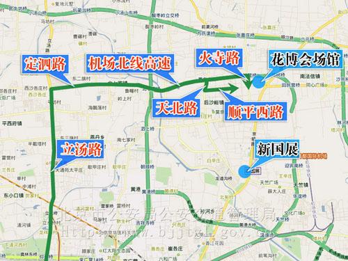 (二)由湯立路經(jīng)定泗路、機(jī)場北線高速路、火寺路出口、火寺路;或由機(jī)場北線高速路天北路出口經(jīng)天北路、順平西路至花博會場館自駕車停車場。