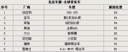 隨著中國汽車市場地位的日益提高,各大廠商越來越重中國市場,因此北京車展也引來了越來越多的全球首發(fā)新車。這屆北京車展將有8款新車全球首發(fā),包含新5系Li和E級(jí)加長版,兩款新車將在車展后國產(chǎn)上市。大眾集團(tuán)除了占據(jù)一個(gè)展館之外,也帶來了兩款全球首發(fā)新車,分別為全球A8L和新輝騰。