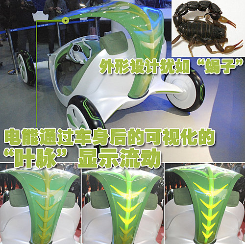 據(jù)上汽集團上海汽車技術(shù)中心劉啟華博士介紹,“葉子”的設(shè)計靈感來自于將作為代步工具的汽車融入城市生態(tài)環(huán)境,與自然同呼吸,返璞歸真、回歸自然的美好愿望。“葉子”的設(shè)計者希望2030年,能夠?qū)崿F(xiàn)車、人、自然融為一體,實現(xiàn)自然與人真正的和諧共存!边@同時也是環(huán)保人士的愿望。