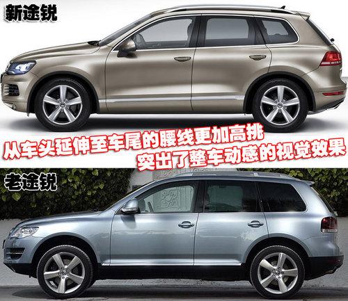 與奧迪Q7和保時(shí)捷卡宴出自同一生產(chǎn)平臺(tái)的大眾途銳,將于今年3月在日內(nèi)瓦車展全球首發(fā)新一代車型。新途銳一改以往的圓潤(rùn)設(shè)計(jì),配合LED燈組及鍍鉻飾條,突顯整車的動(dòng)感與前衛(wèi)。而在內(nèi)飾及配置方面,新途銳也進(jìn)行了升級(jí),不僅采用全新的中控臺(tái)布局而且增加了側(cè)向輔助系統(tǒng)和電子手剎等配置。通過以下新老途銳的對(duì)比解析,讓我們一同了解新途銳到底有著怎樣的變化。