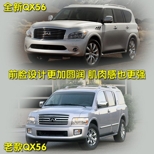 新款QX56外觀方面,厚實(shí)的引擎艙,具有力量感的鍍鉻進(jìn)氣格柵和翼子板透氣孔都在暗示著這款新車強(qiáng)大的動(dòng)力系統(tǒng)。從整體設(shè)計(jì)上講,只有林肯領(lǐng)航員能有如此的氣勢(shì)。但從側(cè)身上來看,新QX56較老款更為圓潤,體現(xiàn)出了英菲尼迪一貫的優(yōu)雅感。