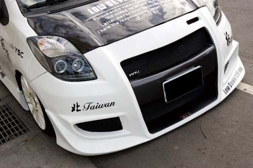 改裝C-One前保險(xiǎn)杠總成讓車頭極為低趴,配上天使眼光圈頭燈的改裝更為亮眼