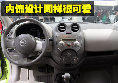 內(nèi)飾方面,瑪馳的采用了灰色和白色搭配的設(shè)計(jì)風(fēng)格,整體感覺清新大方,讓人耳目一新;搭配上方向盤中央、中控臺(tái)按鍵和空調(diào)出風(fēng)口等處的圓形設(shè)計(jì),讓這款車顯得十分的可愛。不過筆者發(fā)現(xiàn),這款車的內(nèi)部儲(chǔ)物空間較少,比較讓人遺憾。