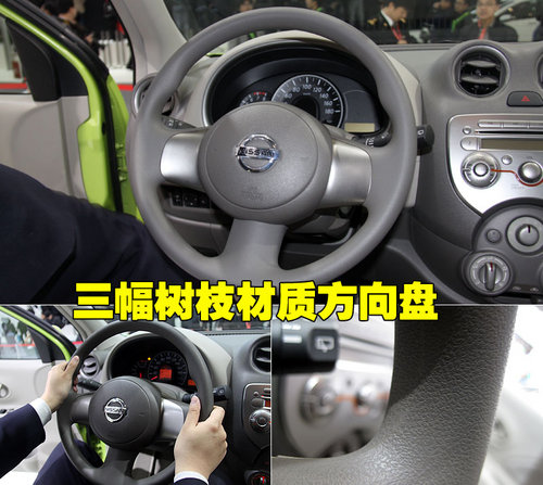 東風(fēng)日產(chǎn)瑪馳采用了三幅式方向盤,配以銀色的裝飾面板,整體感覺運(yùn)動(dòng)時(shí)尚。這款方向盤的包覆材料為樹脂材質(zhì),質(zhì)地較軟手握感覺比較舒適。局部做工方面,瑪馳方向盤的處理也比較精細(xì),沒有毛邊等瑕疵。