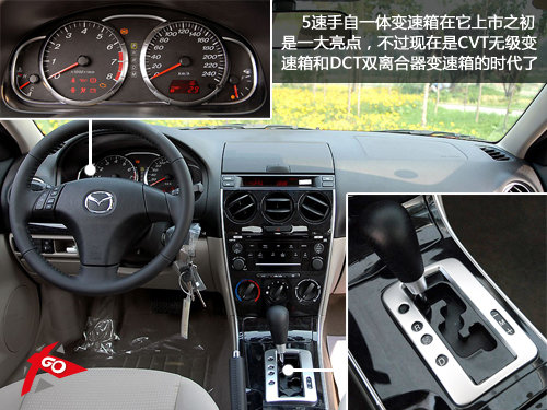 不僅僅外觀時(shí)尚,馬6的內(nèi)飾設(shè)計(jì)也同樣動(dòng)感,主打圓形格調(diào)的內(nèi)飾以黑色、米灰色(轎跑版為全黑內(nèi)飾)為主,讓其內(nèi)部充滿運(yùn)動(dòng)的感覺,而且這款來自日本愛信的5速手自一體變速箱雖然已然過時(shí),但是畢竟維修、養(yǎng)護(hù)費(fèi)用低呀。