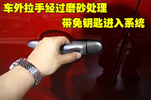 雷諾新風(fēng)景的外車門拉手經(jīng)過磨砂處理,觸摸時(shí)手感很好。這款車的外部開啟方式為“拉動(dòng)式”,其整體的做工比較精細(xì),在反復(fù)開啟車門時(shí)發(fā)現(xiàn),車門把手與連接處沒有松動(dòng)的跡象,并且開啟時(shí)手感比較厚重。