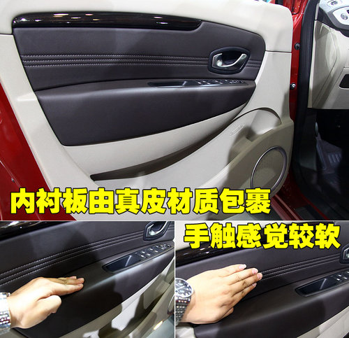 雷諾新風(fēng)景的車門內(nèi)板采用了真皮材質(zhì)包裹,手觸感覺軟硬度適中,在長(zhǎng)時(shí)間駕駛車輛時(shí),手臂長(zhǎng)時(shí)間擱置不會(huì)感到不適。