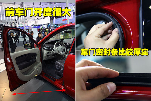 雷諾新風(fēng)景駕駛席一側(cè)的車門完全打開后,車門開啟角度很大,無論何種身材的消費(fèi)者在上下車時(shí)都會(huì)比較輕松。車門四周采用雙密封條,橡膠密封條手觸感覺比較厚實(shí),與車門緊密貼合時(shí)能夠起到很好的密封、隔音的作用,同時(shí)也可以達(dá)到在關(guān)門時(shí)可以起到很好的緩沖作用。