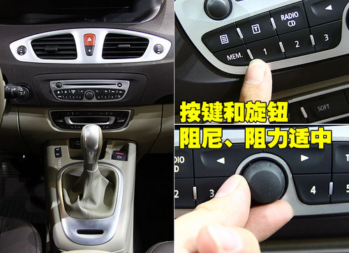 雷諾新風(fēng)景的中控臺(tái)面板屬于時(shí)尚、簡(jiǎn)潔的類型。中控臺(tái)的各按鍵、旋鈕在使用中各項(xiàng)調(diào)節(jié)功均能準(zhǔn)確到位,音響控制面板按鍵大小適中,方便乘客操作。