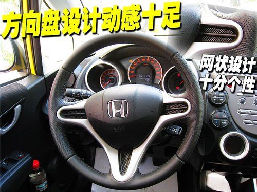 新飛度采用運(yùn)動(dòng)風(fēng)格突出的三幅運(yùn)動(dòng)方向盤,真皮包裹抓握時(shí)手感很好。喇叭按鍵比較靠近方向盤四周,駕駛者在按喇叭的時(shí)候無需要大幅移動(dòng)就能完成這個(gè)動(dòng)作。但遺憾的是新飛度的全系車型沒有采用時(shí)下流行的多功能方向盤。