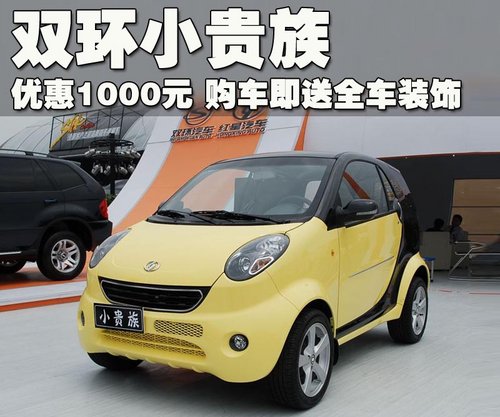 雙環(huán)小貴族車型引起人們關(guān)注的主要原因,就是因?yàn)橥庑卧O(shè)計(jì)與Smart極為相近,小貴族憑借著低價和小車身也在市場占有一定的地位。通過對北京地區(qū)雙環(huán)小貴族車型的調(diào)查,我們發(fā)現(xiàn)小貴族最近不但有降價活動,而且還有好禮相送,具體信息請參考下表:
