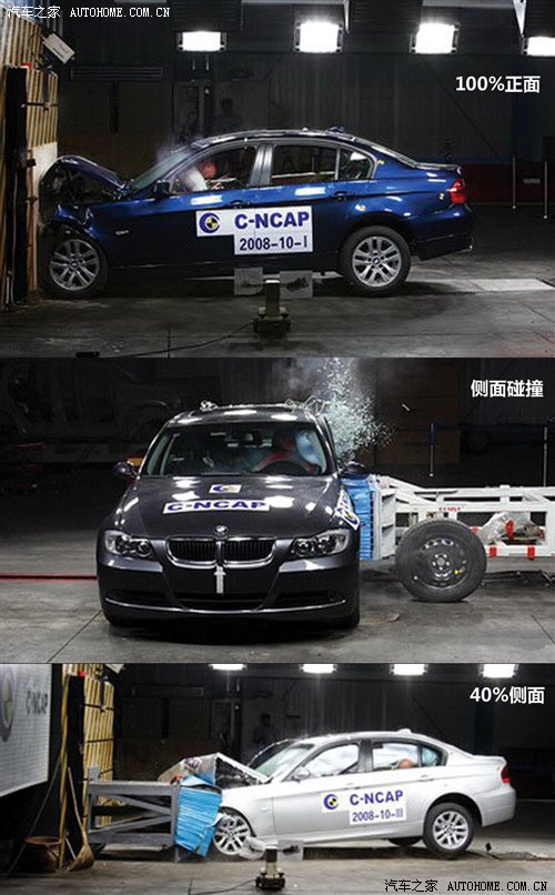 寶馬3系曾經(jīng)在2008年參加了CNCAP的碰撞測試,在完全正面碰撞測試中只得到了13.92分,40%正面偏置碰撞試驗得分為15.36分,而側(cè)面碰撞得到15.95分,比較不錯。