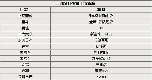 時間總是過得飛快的,似乎只有一瞬間便將到年中的6月份。而每每新的月份即將與我們相約時,我們都不會忘記將會上市的新車型。我們悉數(shù)了6月將上市的新車,發(fā)現(xiàn)熱門的新E級長軸距版、英朗GT、新寶來1.4TSI等11款比較熱門的車型將會出現(xiàn)在上市的列表中,而我們最關注的則是它們的整體情況及售價,到底會是怎么樣?我們會在本文中為您呈現(xiàn)。