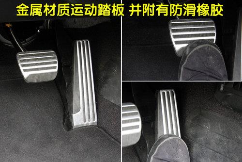 G37敞篷版車型為突出其運動風(fēng)格,所以離合、油門、剎車踏板外部由金屬包裹,并帶有防滑膠粒,各踏板操作行程適中、輕便。