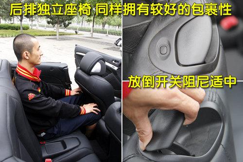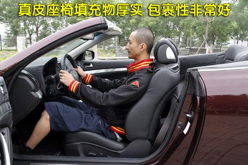 為更好的提供車身線條與尺寸,大部分跑車都會一定量的忽略后排,G37敞篷版也是如此,但后排座椅的乘坐舒適還是不錯,座椅凹陷的設計,同樣擁有了很好的側向支撐性。G37敞篷版的前排座椅前移放倒功能為半自動式,拉手與按鍵開關阻尼適中,沒有松垮的感覺,操作上也比較簡便。