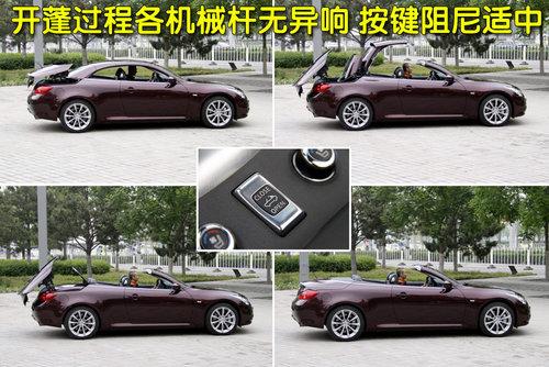 就官方數(shù)據所示,G37敞篷版開蓬僅需25秒,即可在轎跑車和敞篷車之間自在切換。開蓬按鍵周圍由金屬包裹,做工精細,按鍵阻尼適中,開合中噪音極小,全過程無延遲現(xiàn)象。
