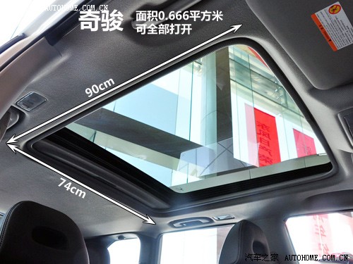 準(zhǔn)確地說,奇駿的天窗應(yīng)該叫大天窗,它的面積遠(yuǎn)超過一般意義上的普通天窗,但是距離全景天窗應(yīng)該說還是有差距的。不過,經(jīng)過實(shí)際測量,奇駿的天窗面積雖然跟其他全景天窗或雙天窗相比要小一點(diǎn),但是它實(shí)際可以打開的面積卻是最大的?梢哉f,奇駿的整個(gè)天窗幾乎都是可以打開的。