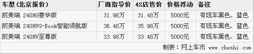 據(jù)北京廣汽豐田4S店銷售人員介紹,目前凱美瑞混合動力版現(xiàn)出現(xiàn)了上市銷售以來的首次優(yōu)惠,全系優(yōu)惠5000元,最低售價僅為31.48萬,端午到店購車會有神秘禮包贈送。店內(nèi)現(xiàn)車主要以黑色為主,還有部分的水晶藍色現(xiàn)車。如果您想預(yù)定其他顏色,需交訂金為1萬元,最多等待1個半月便提到現(xiàn)車。另據(jù)了解,凱美瑞車型共有7種車身顏色,而新推出的冰鉆藍則是混合動力版車型獨有的。如消費者有意購買,可到店進一步詳談。由于北京汽車市場變化較快,各店所銷售車輛顏色可能會有所差異。