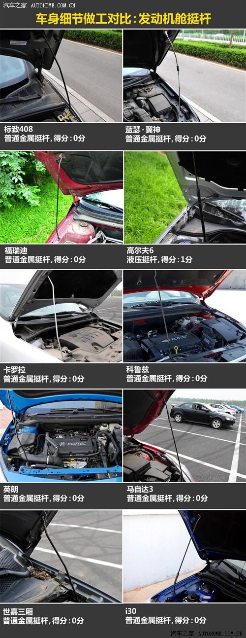 在這一環(huán)節(jié)的對比中,高爾夫6憑借著液壓的發(fā)動機(jī)艙蓋挺桿和大面積的發(fā)動機(jī)護(hù)板而保持領(lǐng)先,進(jìn)口的馬自達(dá)3兩廂在發(fā)動機(jī)護(hù)板上也不錯,但其他一些車型其實則沒有大的區(qū)別。