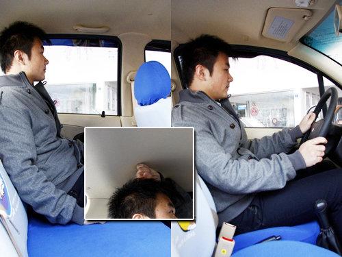 樂馳的車內(nèi)空間感覺上很狹小,就連前排乘坐空間也是如此,上圖中空間展示者身高175cm左右,如此身高已經(jīng)前后接近于車內(nèi)頂棚,對(duì)于空間展示者來(lái)說,前、后的頭部空間,也只有一拳左右的富余量。