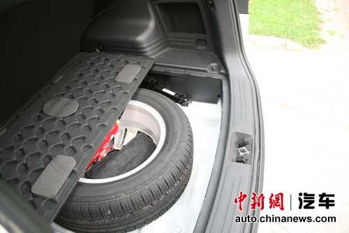圖注:全尺寸備胎很厚道,只是備胎格里沒(méi)有任何隔音鋪裝,只有光禿禿的鐵皮,比較遺憾。