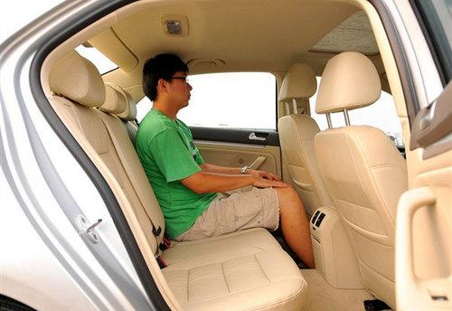 速騰的車內(nèi)空間在三車之中排在最后,2578mm的軸距直接導(dǎo)致了車內(nèi)空間的不足,當車內(nèi)坐滿5人后已經(jīng)顯得比較擁擠了,而且在設(shè)計上速騰也比較偏心前排乘員,前排乘客很容易就能找到自己舒適的位置,不過調(diào)整好座椅位置后,后排乘客的腿部空間只剩3指左右,乘坐夠用但與舒適距離還比較遠。