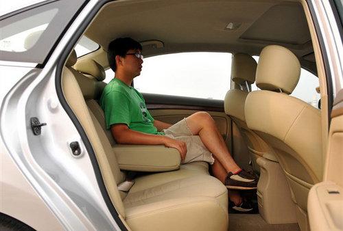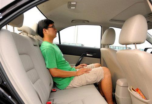 軒逸的后排腿部空間可謂是真正的跨級水平,身高180cm以下的人都可以輕松翹起二郎腿,在這點上速騰和馬6都望塵莫及,加上軒逸柔軟、舒適、寬大的真皮座椅,坐在軒逸上面真的很容易讓人犯困。不過需要指出的是,軒逸的車身寬度是三車當中最窄的,當它的后座擠滿三位乘客時,后排空間就略顯局促了。