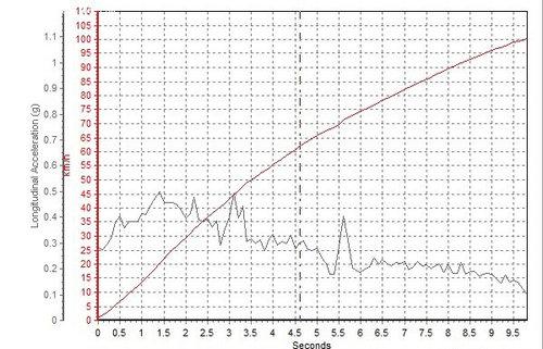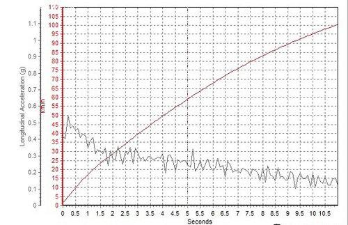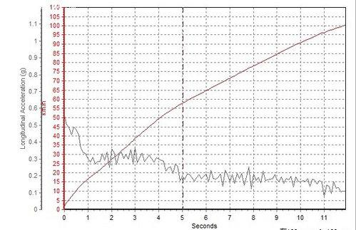 軒逸的0-100km/h加速時(shí)間為10.90秒,另外我們從加速曲線圖中也能看到,軒逸的加速力度異常平順