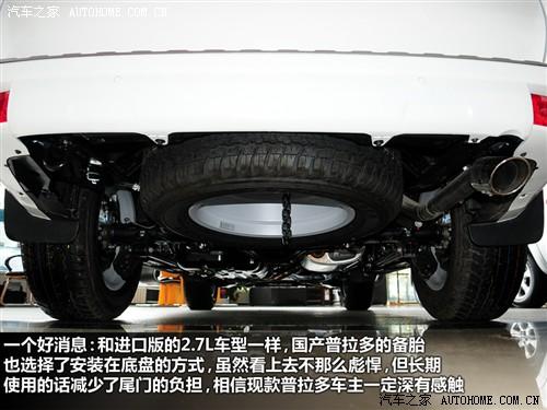 在輪胎和備胎方面,普拉多仍然堅(jiān)持使用鄧祿普的GRANDTREK系列輪胎,只不過花紋從老款的AT20升級(jí)到AT22。另外,新款普拉多有備胎外掛和底盤內(nèi)藏兩種版本,外掛顯得很彪悍,但長時(shí)間使用的話會(huì)引起尾門的變形,從而產(chǎn)生噪音和密封性的問題,這點(diǎn)老款普拉多車主經(jīng)常抱怨,當(dāng)然好處是車輛有足夠的位置設(shè)計(jì)副油箱,從而增加續(xù)航里程。進(jìn)口和國產(chǎn)的新款普拉多選擇了將備胎隱藏在底盤下面的版本。