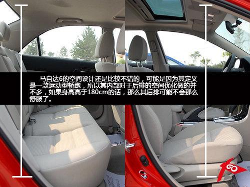有幾個(gè)女人買車會(huì)考慮這車車內(nèi)是否寬敞?不過(guò)至少很多女性在購(gòu)車的時(shí)候都會(huì)考慮其車體尺寸大小,可能是因?yàn)楦杏X車體大了,那么自己心里的安全感就會(huì)更充足,雖然這么說(shuō)有違實(shí)際情況,但是至少馬自達(dá)6的尺寸要比緊湊型轎車大不少……