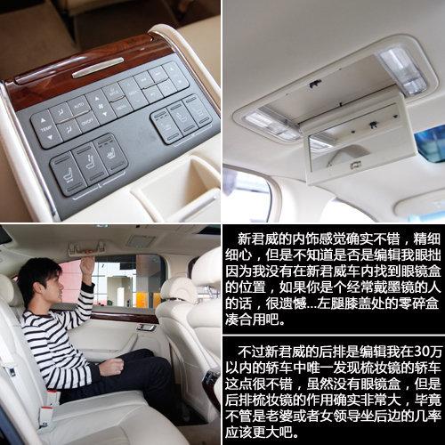 小配置會(huì)給容易感動(dòng)的女性們帶來(lái)一些小驚喜,比如君威后排頭頂?shù)幕瘖y鏡,畢竟買(mǎi)車(chē)后不一定是自己開(kāi)車(chē),作為家里的“領(lǐng)導(dǎo)”大人,坐在后排的她或者妳,如果需要化妝/補(bǔ)妝,那么這里的化妝鏡將起到“決定命運(yùn)”的作用。