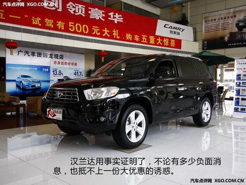 召回門之后,豐田全系產(chǎn)品都試圖用降價(jià)來挽回頹勢(shì)。您還別說,“優(yōu)惠甩賣”這招對(duì)中國(guó)人還真管用——甭管之前有多少負(fù)面,漢蘭達(dá)依然穩(wěn)居銷量榜第四。