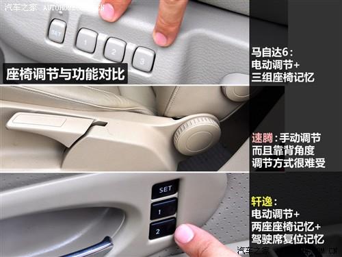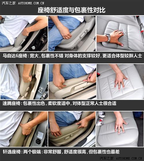 在這三款車中,中型車的馬自達(dá)6具有最寬大的座椅和三組座椅記憶,只是他的天窗面積實在有點。凰衮v的的配置影響了便利性,但卻是三款車中唯一有后排出風(fēng)口的;軒逸的座椅就像家里的沙發(fā)一些,而且在開門的瞬間還可以自動后撤來方便上車,但幾乎沒什么包裹性可言,不利于高速行駛。