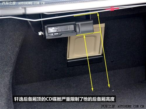 馬自達(dá)6寬大的車尾造就了它不錯的后備廂空間,而德系車型的后備廂規(guī)整程度一直有口皆碑,而軒逸的后備廂相比他們的確不夠大,除了寬度和深度之外,高度上的劣勢更加明顯,這主要是因為后備廂頂部固定的碟盒占用了太多的高度。