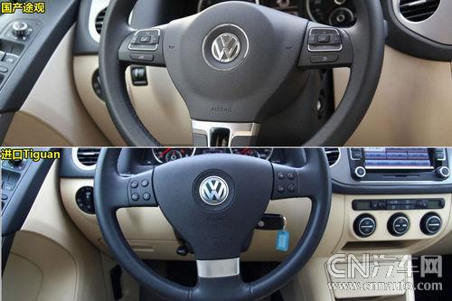 內飾及細節(jié)差異:國產車型在一些細節(jié)設計上要更具優(yōu)勢,比如方向盤采用了高爾夫6式的新風格,方向盤輻條和多功能按鍵在金屬鍍鉻的裝飾下,明顯更具質感。此外,包括大燈調節(jié)旋鈕、電動車窗按鈕都增加了金屬風格的裝飾。雙區(qū)自動恒溫空調也啟用了和斯柯達昊銳相同款式的最新設計面板。而在一些并不是十分重要的配置上,國產車型省略后以進一步降低價格,比如音響面板上方的副駕駛席氣囊指示燈變成了卡片槽,手套箱中的副氣囊開關也沒有再出現(xiàn)。國產車型由于兩種排量多達8款車型配置,導航系統(tǒng)、全景天窗都可以選裝配置也讓消費者多了更多選擇。尤其是對于低端消費者,國產途觀還是具備相當?shù)奈Α?/p>