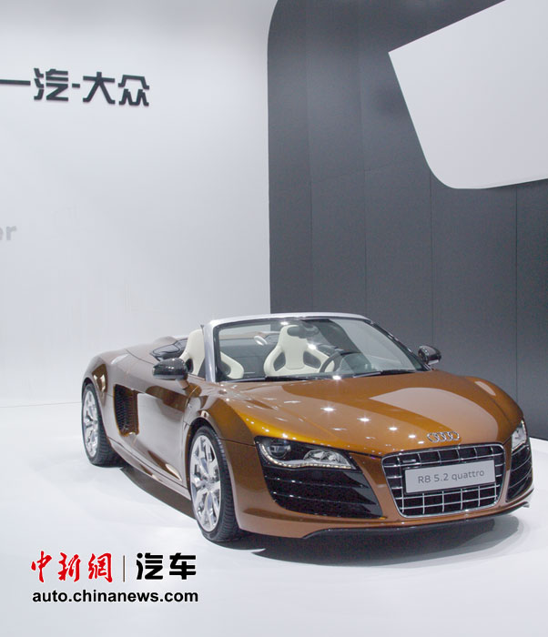 在人流如織的海外汽車巨頭的展館里,天價豪車成了當(dāng)仁不讓的最搶眼明星,相形之下即使再靚麗的車模也黯然失色。圖為奧迪 R8 5.2 Quattro